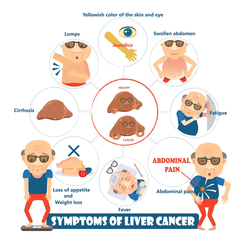 Liver cancer may not show any visible or palpable signs in its early stages. However, when the disease spreads, individuals may have one or more of these typical signs. It’s crucial to keep in mind that these symptoms might be caused by other medical issues. Consult your physician if you have any of the following sings: